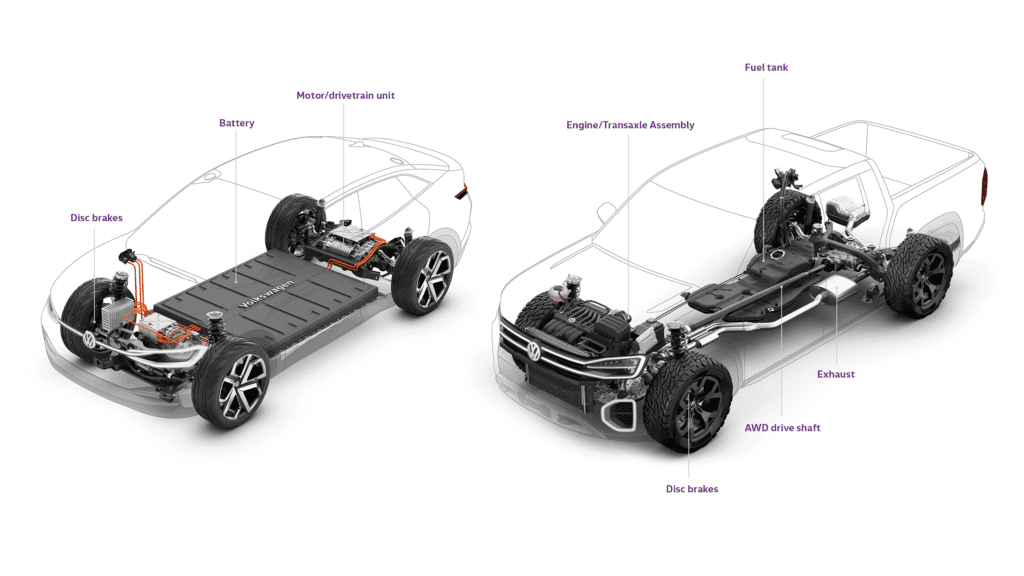 This is Volkswagen’s premium & advanced battery architecture for the EV. This platform fits the battery below the floor of the EV, which brings the centre of gravity down which improves the range. Volkswagen uses this platform in all of its EVs.